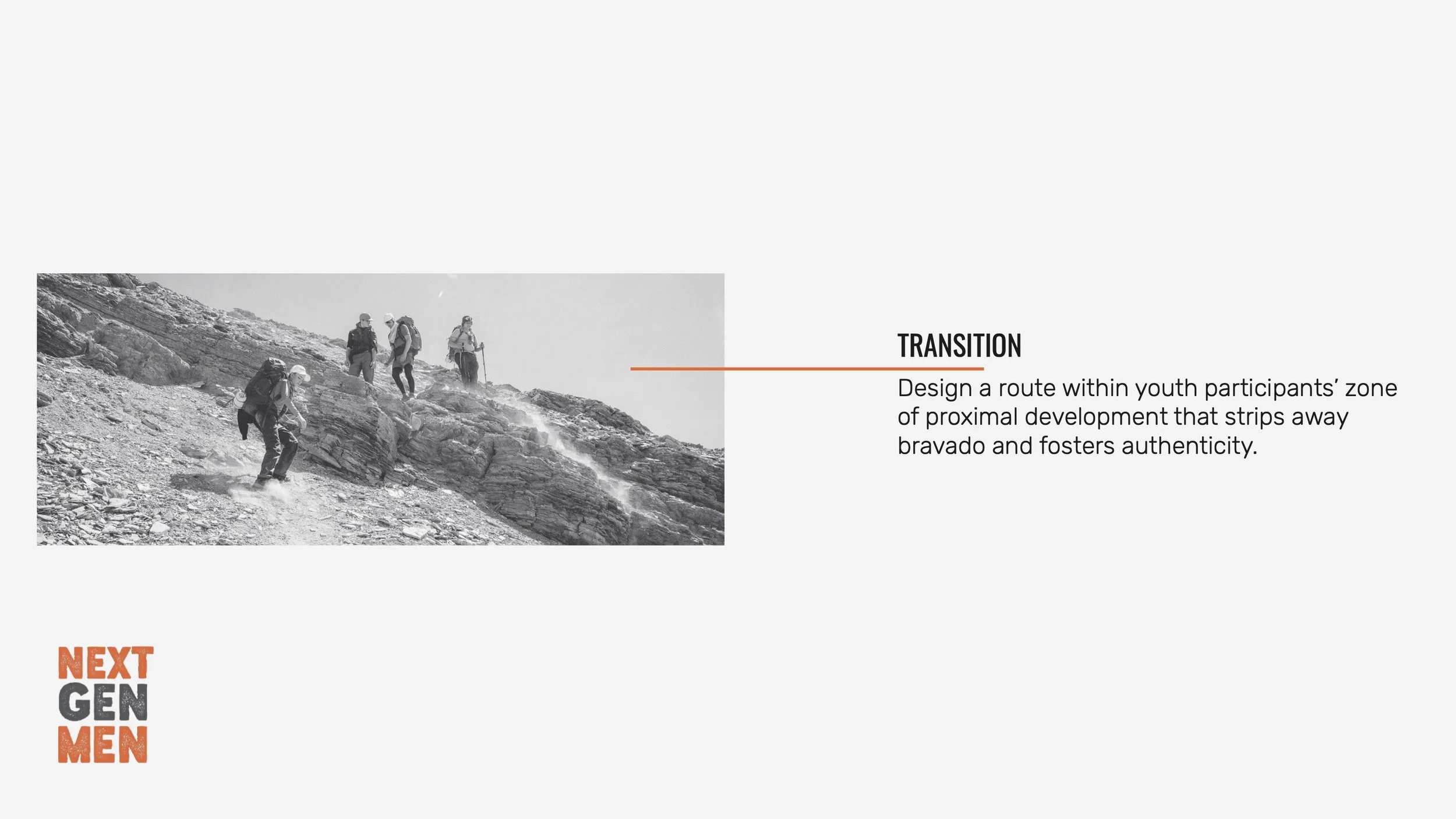 According to van Gennep, the structure of a rite of passage revolves around a period of transition. This stage is shaped by the sharing of stories, lessons and cultural values that guide boys towards a new understanding of themselves and their community. They’re given opportunities to reflect on who they’ve been and who they’re becoming—and perhaps most importantly, a chance to undertake a challenge they’ve never faced before.